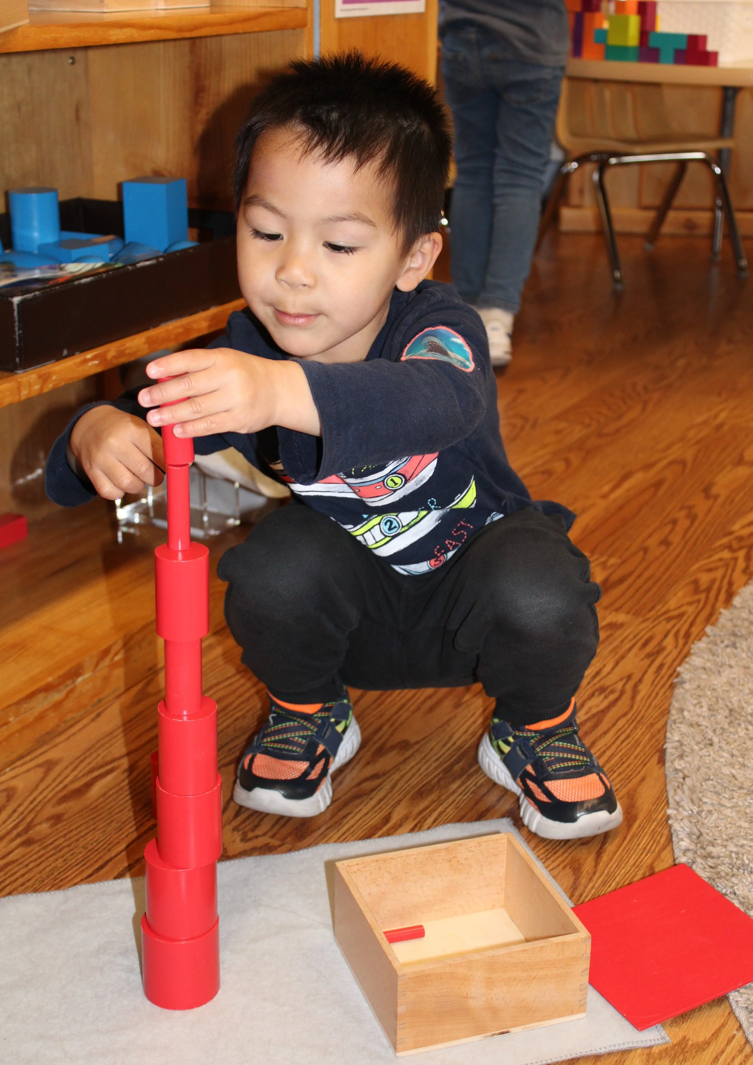 Learning materials in the classroom have been specially designed, by isolating one concept or skill, to naturally draw children to explore and work with them. Each material has also been designed so a child can check his own work—what Montessori calls “control of error.”